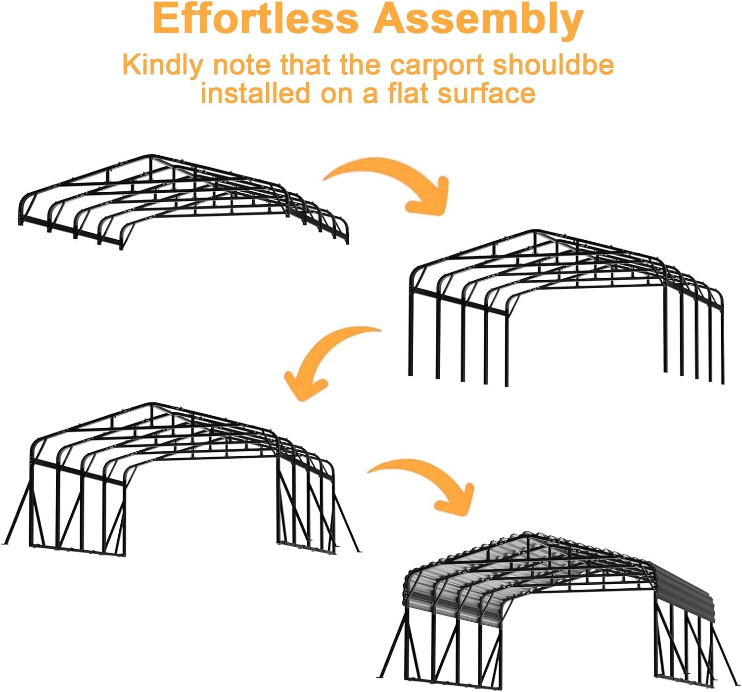 Tool-Free Assembly:Designed for straightforward setup,the carport includes detailed instructions and all necessary hardware—no special tools required.Three adults can assemble it in under 4 hours,with pre-drilled holes and labeled parts streamlining the process.For added convenience,the modular design allows for easy relocation or expansion as needed.