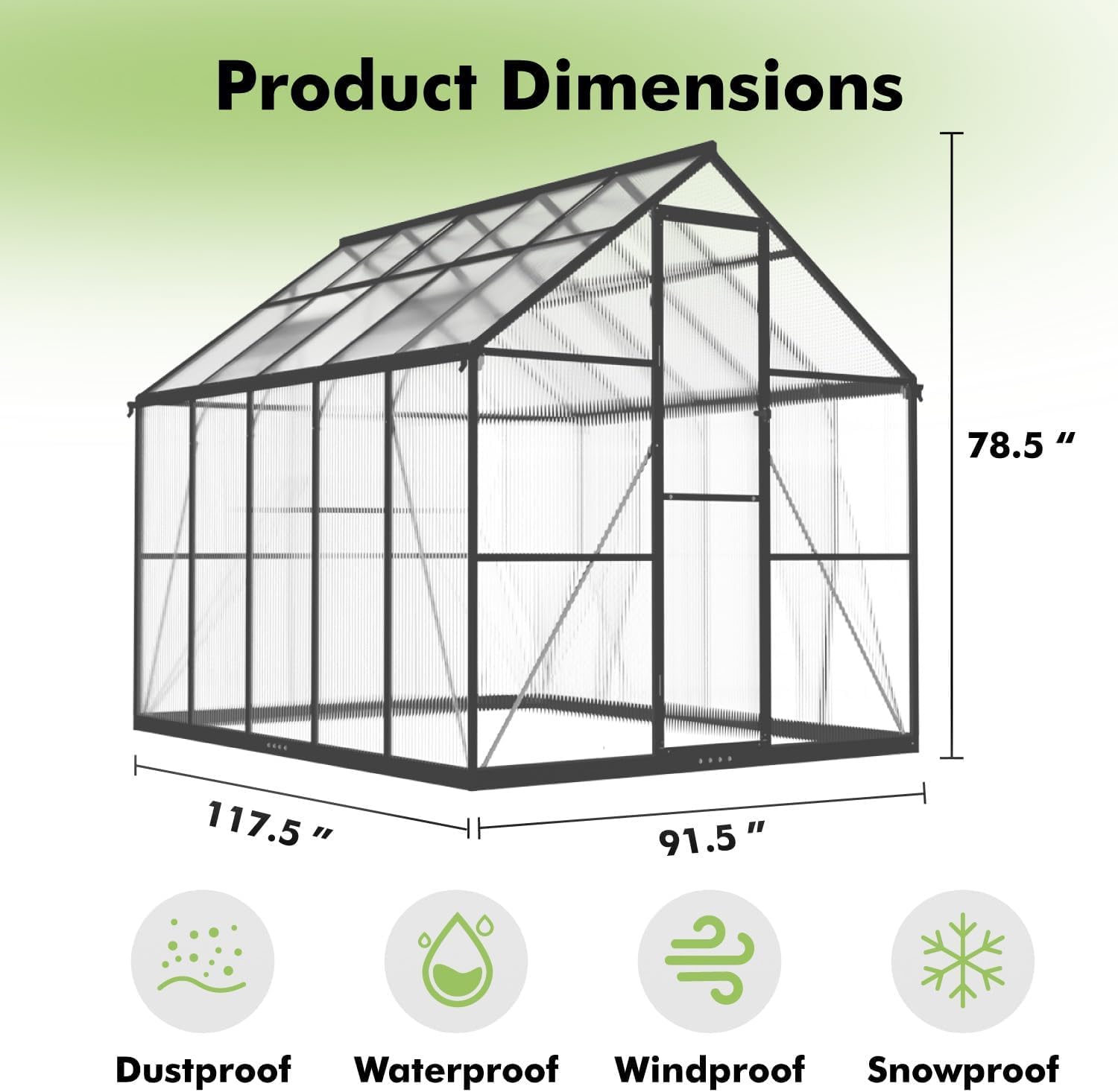 JAIOO 8x10FT Polycarbonate Greenhouse with Aluminum Frame